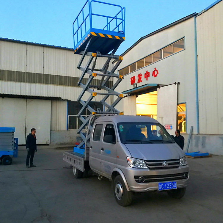 車(chē)載雙柱鋁合金平臺(tái)施工作業(yè)中